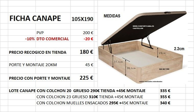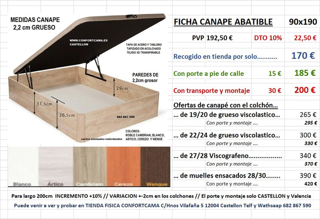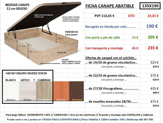 INCLUYE TRANSPORTE Y MONTAJE EN CASTELLON, VALENCIA Y CIUDADES DE ALREDEDOR,