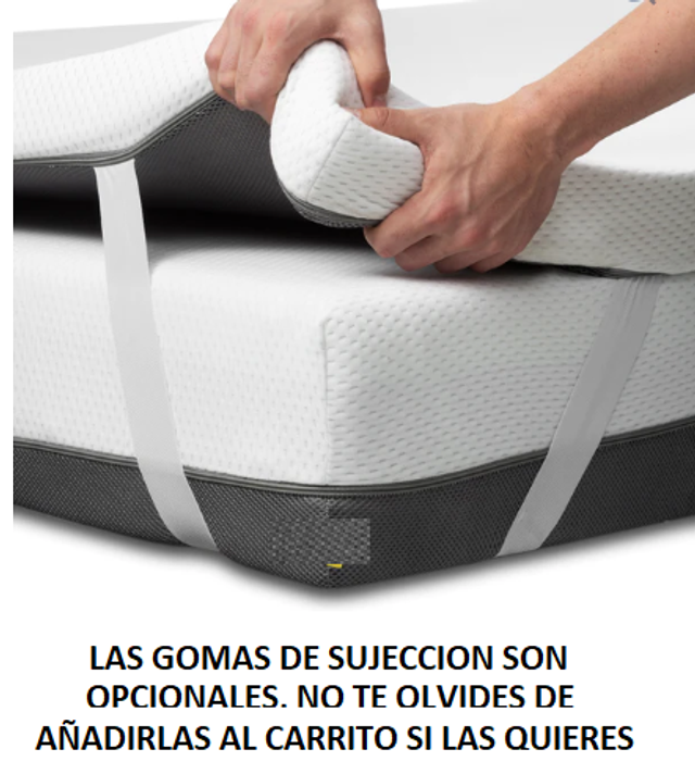 El topper viene con una funda de tergal con cremallera y se ajusta al colchón con el protector o sábana bajera.